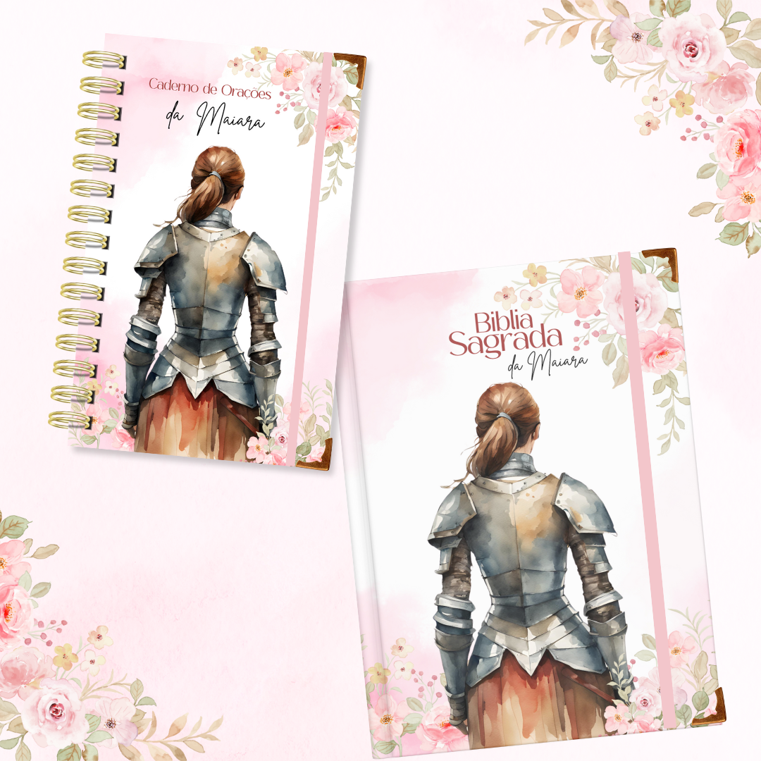 Kit Guerreira de Oração - Bíblia e Caderno Slim Rosa